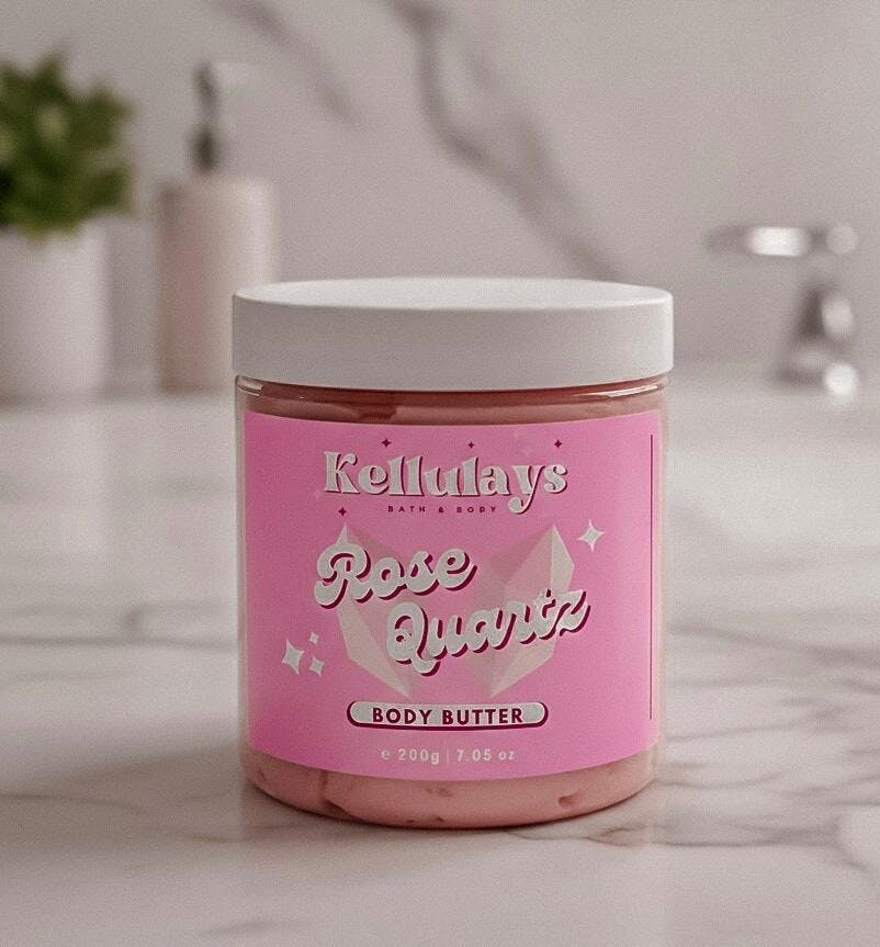 Our Rose Quartz Whipped Body Butter is soft, dreamy, and whipped to absolute perfection — a silky cloud that melts into your skin the second it touches it. And the scent? She’s giving rosy, golden, warm, sweet, and straight-up addictive.